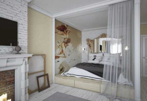 ΠΏΡΠΈ Π·ΠΎΠ½ΠΈΡΠΎΠ²Π°Π½ΠΈΠΈ Π³ΠΎΡΡΠΈΠ½ΠΎΠΉ ΠΈ ΡΠΏΠ°Π»ΡΠ½ΠΈ ΠΎΡΠ΅Π½Ρ ΡΠ°ΡΡΠΎ ΠΈΡΠΏΠΎΠ»ΡΠ·ΡΡΡΡΡ ΡΠΊΠ°ΡΡ ΠΈΠ»ΠΈ ΡΡΠ΅Π»Π»Π°ΠΆΠΈ, ΡΠ°ΠΊΠΆΠ΅ ΡΠ΄Π°ΡΠ½ΡΠΌ ΠΏΡΠΈΠ΅ΠΌΠΎΠΌ ΡΠ²Π»ΡΠ΅ΡΡΡ ΠΏΡΠΈΠΌΠ΅Π½Π΅Π½ΠΈΠ΅ ΠΏΠΎΠ΄ΠΈΡΠΌΠ° Π² Π·ΠΎΠ½Π΅ ΡΠΏΠ°Π»ΡΠ½ΠΈ β Π² ΡΠ°ΠΊΠΎΠΌ ΡΠ»ΡΡΠ°Π΅ ΠΏΠΎΠ΄Π½ΠΈΠΌΠ°Π΅ΡΡΡ ΡΠ°ΡΡΡ ΠΊΠΎΠΌΠ½Π°ΡΡ, Π³Π΄Π΅ Π½Π°Ρ ΠΎΠ΄ΠΈΡΡΡ ΠΊΡΠΎΠ²Π°ΡΡ, ΠΈ Π·Π° ΡΡΠ΅Ρ ΡΡΠΎΠ³ΠΎ Π²ΠΎΠ·Π²ΡΡΠ΅Π½ΠΈΡ ΠΎΡΠ΄Π΅Π»ΡΠ΅ΡΡΡ ΠΎΡ Π³ΠΎΡΡΠΈΠ½ΠΎΠΉ, ΡΠ°ΠΊΠΆΠ΅, ΡΠΏΠ°Π»ΡΠ½ΡΡ Π·ΠΎΠ½Ρ ΠΌΠΎΠΆΠ½ΠΎ ΠΎΡΠ΄Π΅Π»ΠΈΡΡ ΠΏΡΠΈ ΠΏΠΎΠΌΠΎΡΠΈ ΡΡΠΎΡ ΠΈΠ»ΠΈ ΠΆΠ΅ ΠΈΡΠΏΠΎΠ»ΡΠ·ΠΎΠ²Π°ΡΡ ΠΌΠ΅Π±Π΅Π»Ρ-ΡΡΠ°Π½ΡΡΠΎΡΠΌΠ΅Ρ;