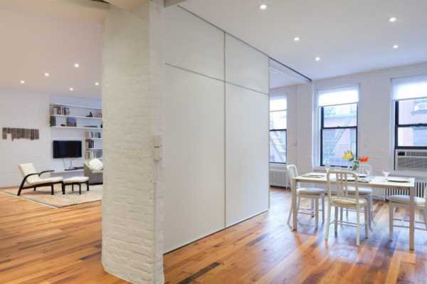 Ρ ΠΏΠΎΠΌΠΎΡΡΡ ΡΠ°Π·Π΄Π²ΠΈΠΆΠ½ΡΡ Π΄Π²Π΅ΡΠ΅ΠΉ β ΠΈΡΠΏΠΎΠ»ΡΠ·ΡΡ Π»Π΅Π³ΠΊΠΈΠ΅ ΠΊΠ°ΠΊ Ρ ΡΠΊΠ°ΡΠΎΠ²-ΠΊΡΠΏΠ΅ Π΄Π²Π΅ΡΠΈ ΠΏΠΎΠ΄ ΠΏΠΎΡΠΎΠ»ΠΎΠΊ, ΠΌΠΎΠΆΠ½ΠΎ Π΄ΠΎΠ±ΠΈΡΡΡΡ Π΄ΠΎΠ²ΠΎΠ»ΡΠ½ΠΎ ΠΈΠ·ΡΡΠ½ΠΎΠ³ΠΎ Π·ΠΎΠ½ΠΈΡΠΎΠ²Π°Π½ΠΈΡ ΠΏΠΎΠΌΠ΅ΡΠ΅Π½ΠΈΡ, ΠΎΡΠΎΠ±Π΅Π½Π½ΠΎ ΠΏΡΠΈ ΠΎΡΠ΄Π΅Π»Π΅Π½ΠΈΠΈ Π½Π΅Π±ΠΎΠ»ΡΡΠΎΠΉ Π·ΠΎΠ½Ρ Π² ΡΠΎΡΡΠ΅ ΠΊΠΎΠΌΠ½Π°ΡΡ, ΡΠΎΠ΄Π΅ΡΠΆΠΈΠΌΠΎΠ΅ ΠΊΠΎΡΠΎΡΠΎΠΉ Π½Π΅ΠΆΠ΅Π»Π°ΡΠ΅Π»ΡΠ½ΠΎ Π΄Π΅ΠΌΠΎΠ½ΡΡΡΠΈΡΠΎΠ²Π°ΡΡ ΠΏΠΎΡΡΠΎΡΠΎΠ½Π½ΠΈΠΌ β Π² ΡΠ°ΠΊΠΎΠΌ ΡΠ»ΡΡΠ°Π΅ Π»ΡΡΡΠ΅ ΠΈΡΠΏΠΎΠ»ΡΠ·ΠΎΠ²Π°ΡΡ Π½Π΅ΠΏΡΠΎΠ·ΡΠ°ΡΠ½ΡΠ΅ Π΄Π²Π΅ΡΠΈ, Π²ΠΎ Π²ΡΠ΅Ρ ΠΎΡΡΠ°Π»ΡΠ½ΡΡ ΡΠ»ΡΡΠ°ΡΡ Π½Π°ΠΈΠ±ΠΎΠ»Π΅Π΅ Π²ΡΠΈΠ³ΡΡΡΠ½ΠΎ Π±ΡΠ΄ΡΡ ΡΠΌΠΎΡΡΠ΅ΡΡΡΡ ΠΏΠΎΠ»ΠΎΡΠ½Π° ΡΠΎ ΡΡΠ΅ΠΊΠ»Π°ΠΌΠΈ ΠΈΠ»ΠΈ ΠΆΠ΅ ΠΈΠ· ΠΏΠΎΠ»ΡΠΏΡΠΎΠ·ΡΠ°ΡΠ½ΠΎΠΉ ΡΠΈΡΠΎΠ²ΠΎΠΉ Π±ΡΠΌΠ°Π³ΠΈ, Π°Π½Π°Π»ΠΎΠ³ΠΈΡΠ½ΠΎΠΉ ΡΠΏΠΎΠ½ΡΠΊΠΈΠΌ ΡΡΠ΄Π·ΠΈ;