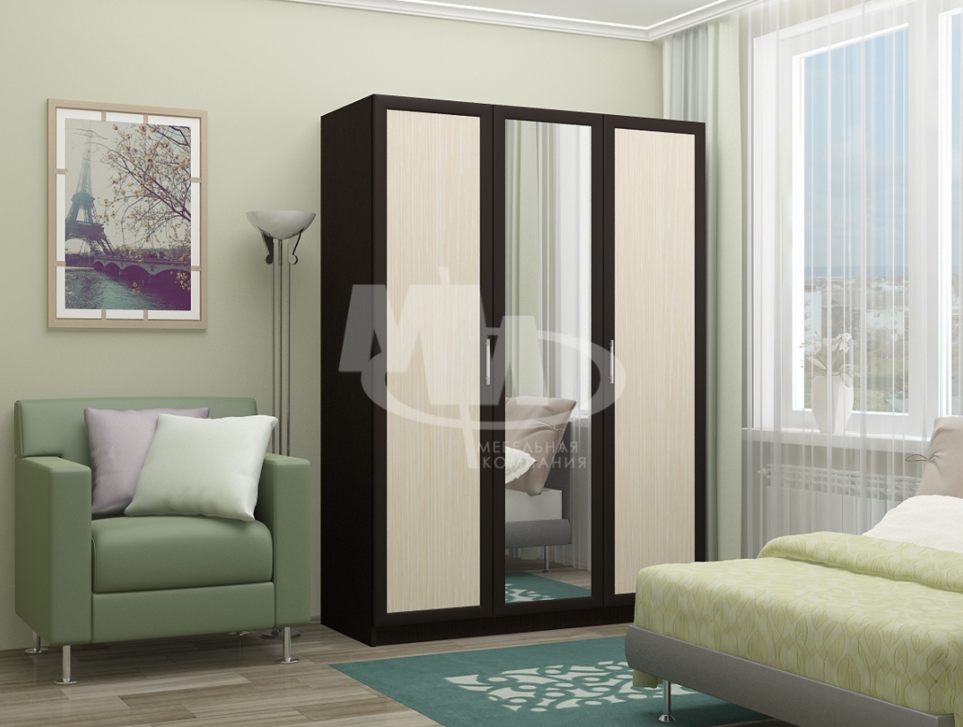- Мебель цвета венге гармонично выглядит в комбинации с зеленоватыми оттенками: салатовый, хаки, болотный, оливковый.