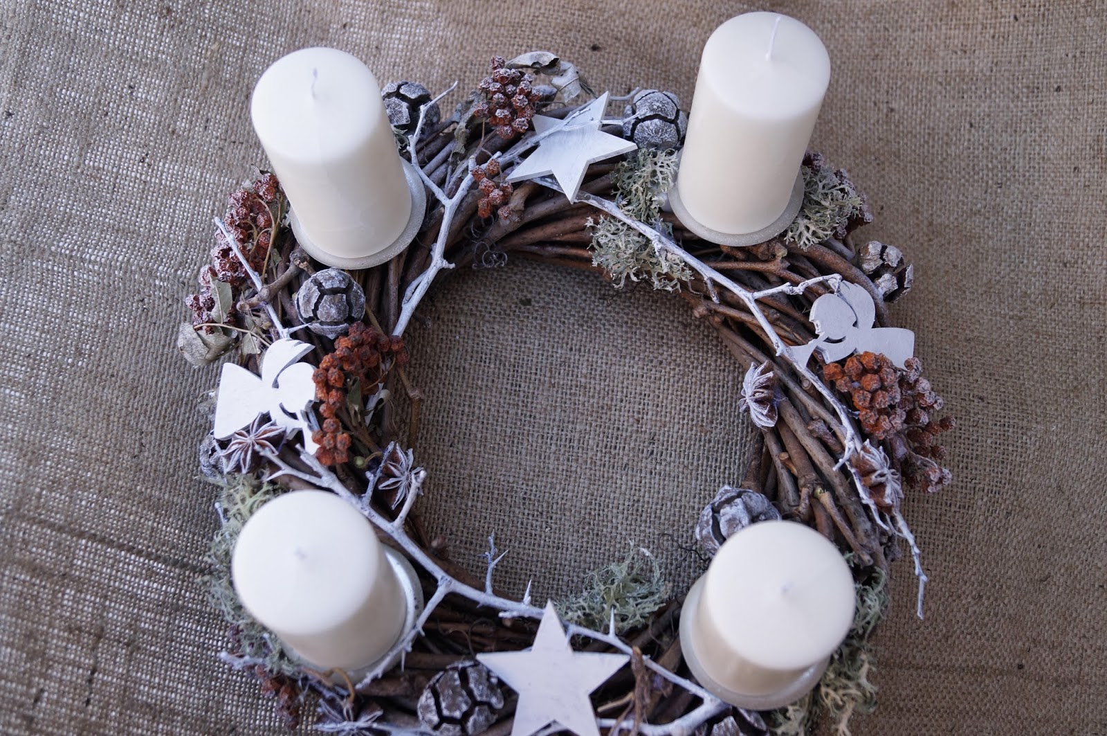 А вообще, декорировать венок можно чем угодно: елочными игрушками, мишурой, конфетами, декоративными веточками, еловыми лапками или веточками других вечнозеленых деревьев , всевозможными лентами и шнурами, засушенными дольками лимона или апельсина, палочками корицы и звездочками бадьяна и многим другим в зависимости от вашего вкуса и фантазии.