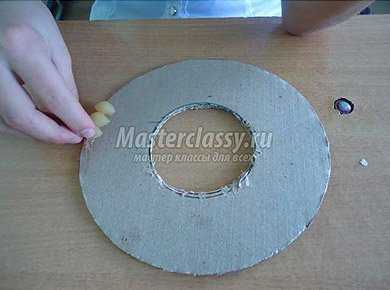1. Основу для венка вырезаем из картона и несколько слоёв склеиваем между собой клеем ПВА.