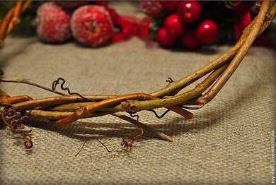- Вплетайте новые лозы к нашему рождественскому венку. Небольшие отклонения от идеального круга только придадут естественность нашему венку.