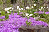 Цветущие коврики этих почвопокровных растений станут прекрасным дополнением фона для любого крупного растения, придавая почве сказочный вид.