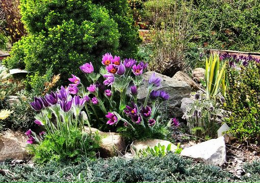 На смену первоцветам заиграют красками анемоны, примулы и синий барвинок.
