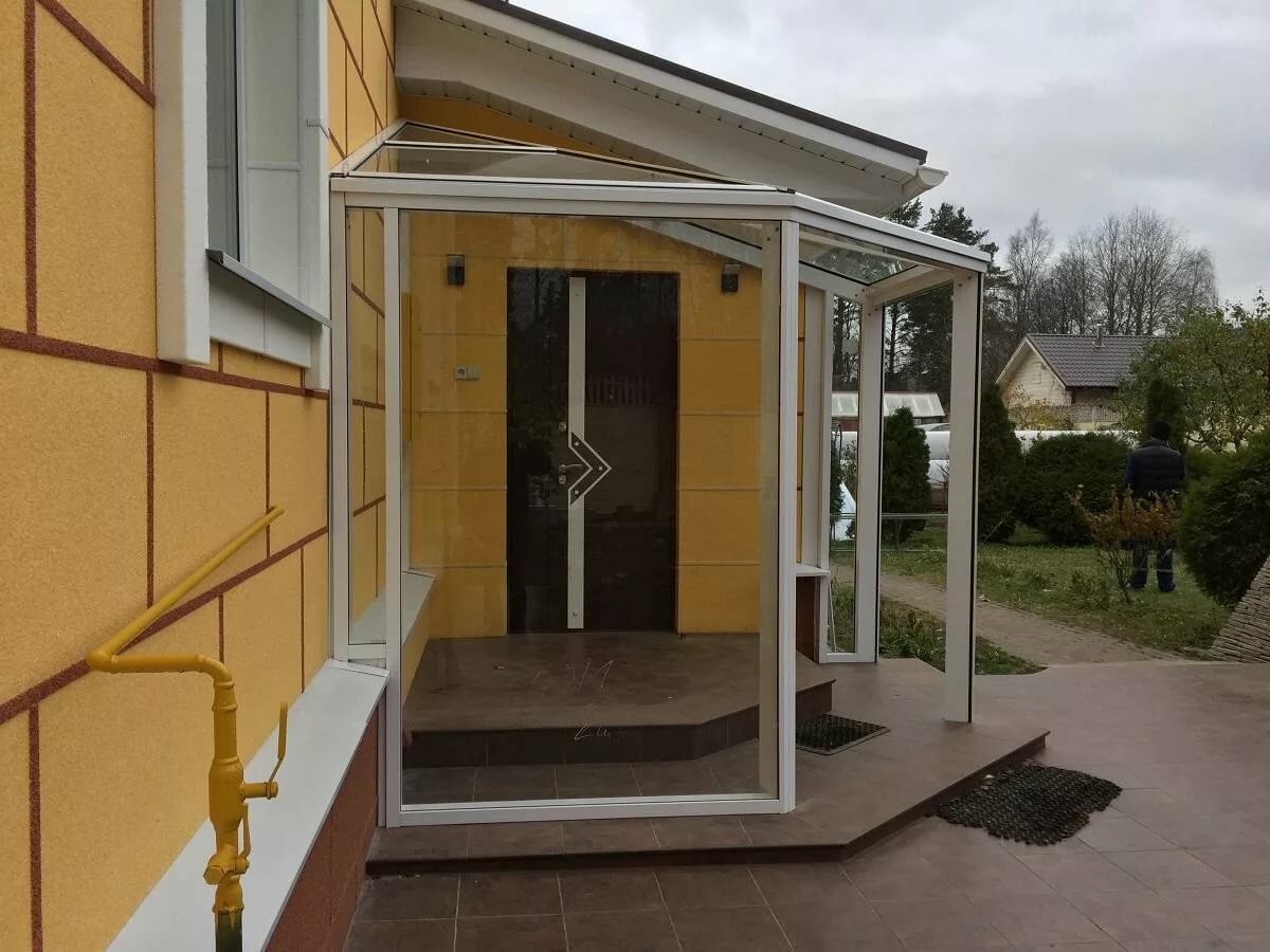 Такие козырьки оформляют вход, прихожую, обеспечивают место отдыха в любую погоду.