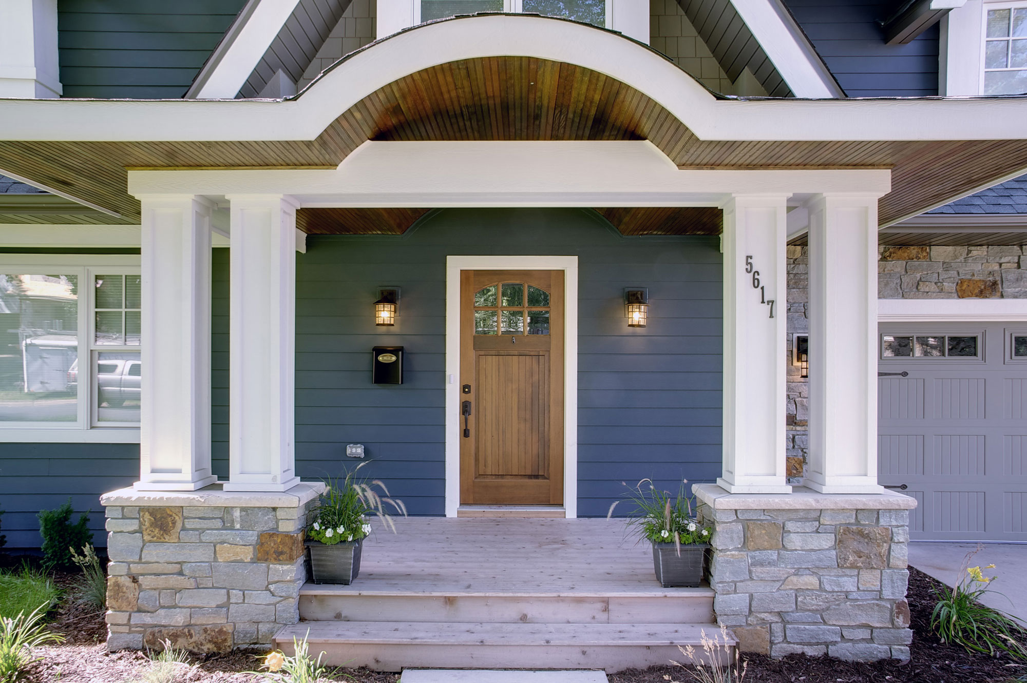 Добавление фронтона над дверью придает объем и интерес фасаду вашего дома.Он также защищает вашу дверь от дождя и солнца. Двускатная крыша может быть металлической или деревянной, и во многих случаях она недорогая и ее легко установить местным мастером. Чтобы узнать больше о дверях, щелкните здесь.