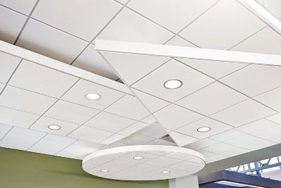 - Подвесные потолки могут скрывать водопровод, проводку или воздуховоды, обеспечивая при этом легкий доступ к ним.
