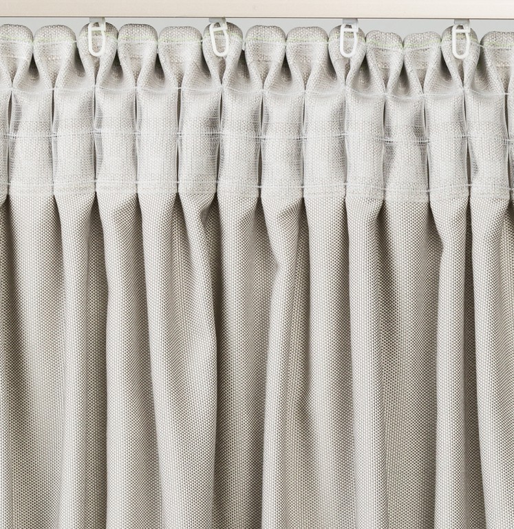Тесьма с продетыми в нее одним или двумя прочными шнурами, помимо функции крепления на карниз, помогает формировать складки. Ленту пришивают в верхней части тюля двумя швами, по нижнему и верхнему краю тесьмы. Затем шнуры стягивают, чтобы добиться желаемого эффекта в плане складок.