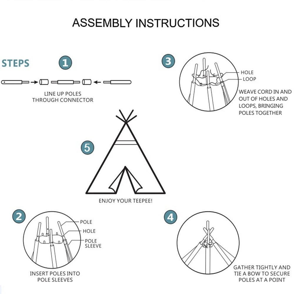 - Индийские вигвамы-типи для альпинистов в помещении и на открытом воздухе Идеально подходят для мальчиков и девочек Прочная, долговечная Детская палатка-вигвам Складная детская игровая палатка Deluxe 100% хлопок Холст Игровой домик Полное украшение из холста