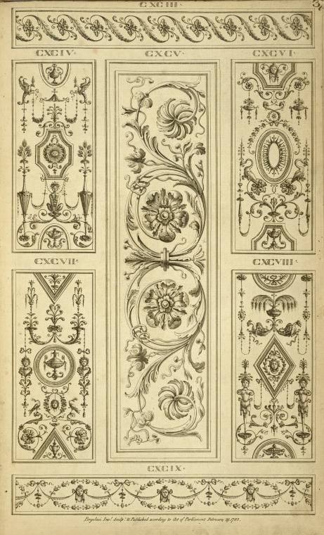 В сохранившихся зданиях, дворцах и частных постройках мы видим немало художественной работы, работы по проектированию как плана постройки, так и каждой конкретной орнаментальной декорации. Помимо архитектурного наследия художники прошлого оставили большое количество рисунков и чертежей, сделанных в одиночку или с помощью переводчика на разных стадиях производственного процесса. Многие проекты были зафиксированы на бумаге, и ни один из них не является типовым. Напротив, каждый проект подчеркивает оригинальность, красоту и остроумие, которое проявляется в образцах декоративного искусства и, в частности, в орнаменте.
