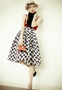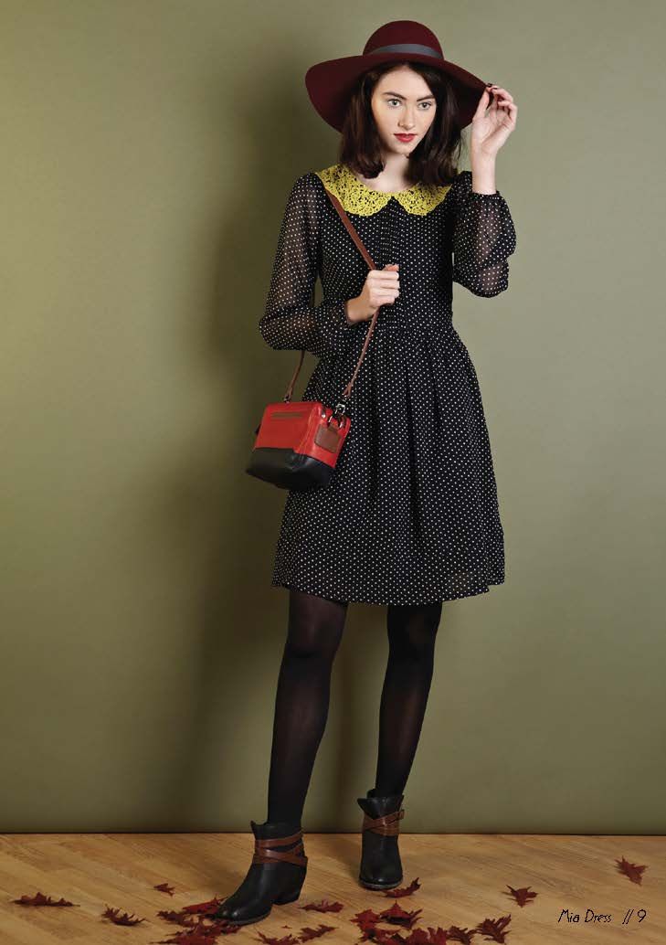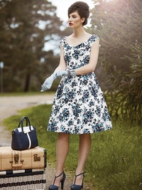 длинные платья в горошек без рукавов с отделкой из рикрака 1945-х годов, короткое свободное платье с цветочным орнаментом 1950-х годов, сандалии-гладиаторы 1940-х годов, пышные вечерние платья с цветочным принтом 1960-х годов, кардиганы-близнецы, популяризированные Коко Шанель, свободные пальто 1940-х годов. 1950-е годы.