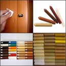 Восковые мелки, по виду они похожи на небольшие карандаши, имеют достаточно широкий цветовой спектр, что позволяет довольно просто подобрать необходимый оттенок. Этот способ хорош для неглубоких царапин. Ремонтные работы проводят в несколько шагов: