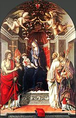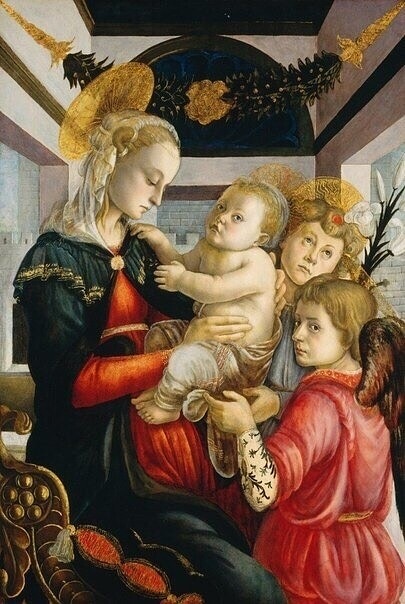 Даже одна из дочерей Иофора на первом плане фрески в «Сцене у колодца» удивительно похожа на юную Венеру — та же хрупкость фигуры, удлиненное лицо, чуть склоненная голова. А в микеланджеловской фреске «Страшный суд» и вовсе нарушены многие каноны: Христос представлен юным безбородым атлетом, вся алтарная стена Сикстинской капеллы, которую занимает фреска, заполнена изображением нагих атлетических тел. Даже Христос почти обнажен. Правда, эта роспись вызвала настолько серьезные нарекания папы Павла III, что живописцу Даниеле де Вольтерра было поручено дописать фреску, прикрыв «языческие непристойности» великого мастера. Очень «обмирщены» изображения Богоматери у Леонардо да Винчи и Рафаэля — особенно в леонардовской «Мадонне Бенуа» или, как ее еще называют, «Мадонне с цветком», чудом оказавшейся в России и ныне экспонирующейся в Эрмитаже, и в известнейших рафаэлевских «Сикстинской мадонне», находящейся в Дрездене, «Мадонне Коннестабиле», хранящейся в петербургском Эрмитаже, а также в «Мадонне со щегленком», где кроме младенца Иисуса изображен и маленький Иоанн — будущий Иоанн Креститель (картина во Флоренции, в галерее Уффици).