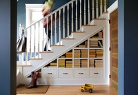 Приложив немного креатива, пространство под лестницей, которым часто пренебрегают, можно превратить в функциональное пространство. Это очень полезный прием, позволяющий уберечь небольшие помещения от беспорядка.