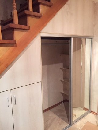 В этом случае легче сделать шкаф под лестницей своими руками.