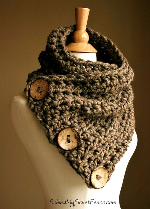 Шарфы и капюшоны очень крутые, но как насчет шейного платка, который застегивается на пуговицу? Очень красиво, и цвет просто нечто! Получите схему и инструкции от All Free Knitting. Круто то, что как только вы освоите этот проект, вы сможете сделать их и подарить друзьям и семье, которым это, безусловно, понравится так же, как и нам.