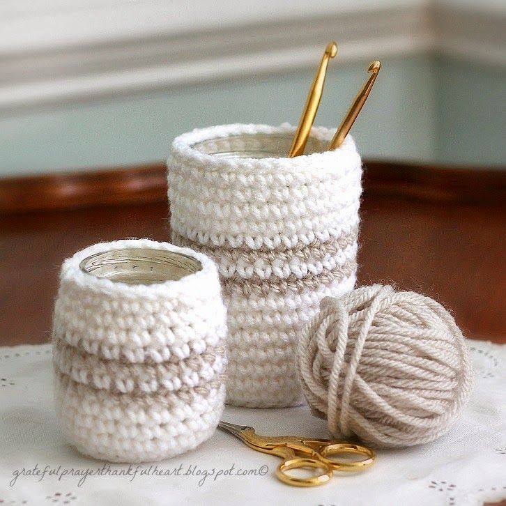 Для горшков, кашпо или ваз можно связать необычные чехлы.