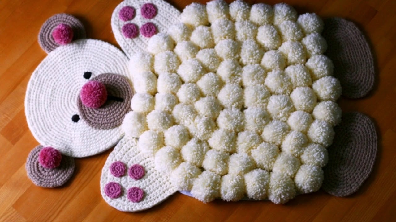 Круглый коврик с помпонами или в виде мультяшного персонажа можно положить в детской комнате.