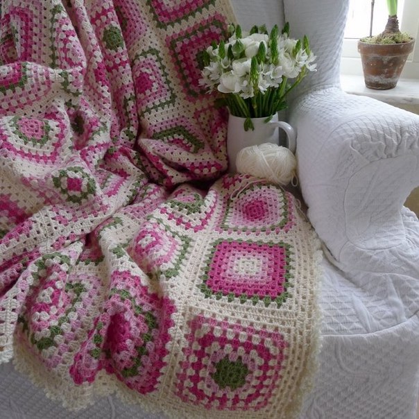 Пледы и покрывала всегда привносят в дом атмосферу уюта. А вязаный плед на пару с чашкой горячего какао точно согреет прохладным осенним вечером. Очень эффектно смотрятся пледы крупной вязки из толстых ниток. Плед из разноцветной пряжи в детской комнате поднимет настроение и не даст ребенку замерзнуть.