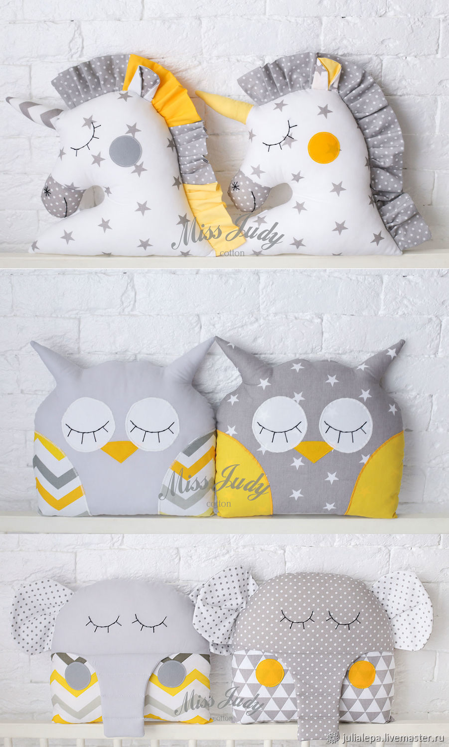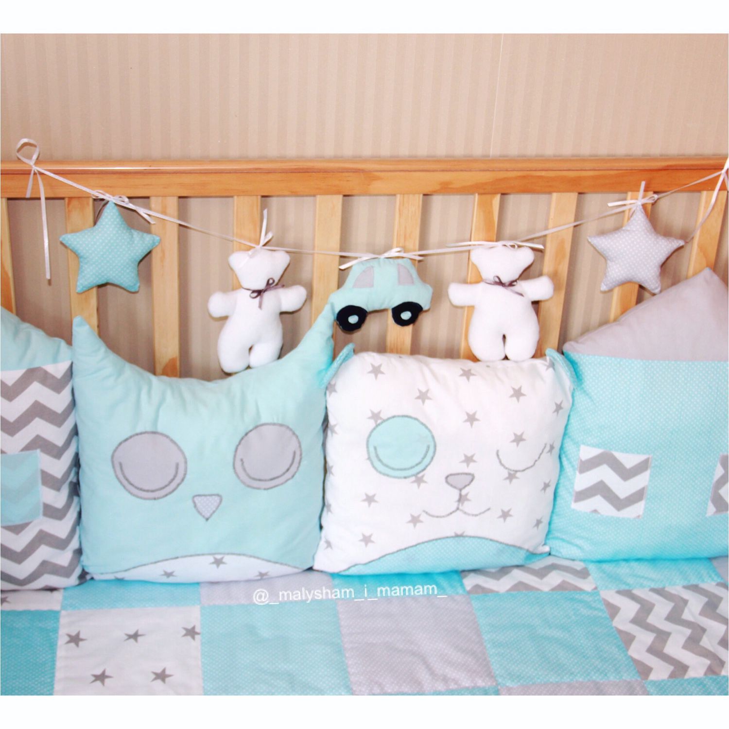 После этого можно смело заправлять подушки в наволочки, а одеяло в пододеяльник. Если процесс понравился, то можно сделать несколько комплектов для детской кроватки и менять их поочередно. Каждый из них можно украсить своими элементами.