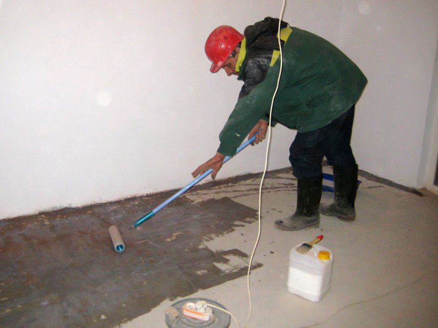 - Бетонную поверхность обрабатывают грунтовочными составами.