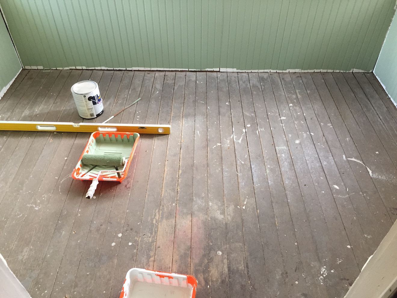 Вам нужно будет удалить существующий ламинат, плинтус, молдинги для обуви, регистры подогрева пола и все остальное, что прикреплено к полу. Необходимо удалить старое напольное покрытие, включая прихватки и скобы. Плоская лопата — хороший инструмент для удаления скоб, клея и прочего мусора.