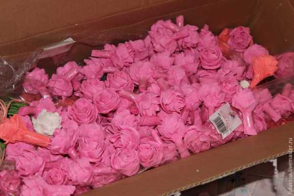 После чего скручиваем розочки. Я советую сначала сделать заготовки цветов, а затем уже клеить их на основу. Потому что если делать один цветок и сразу клеить его, то уйдет гораздо больше времени.