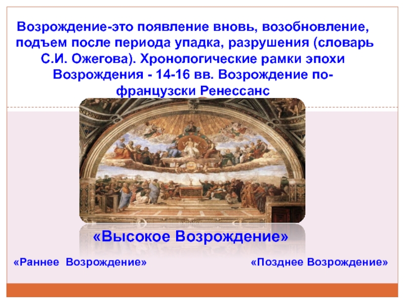 Высокое возрождение это: Эпоха Возрождения и её периоды