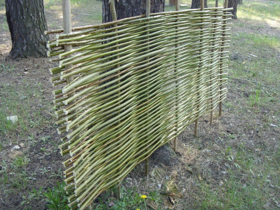 От высоты забора зависит толщина опор. Само плетение может быть вертикальным или горизонтальным.