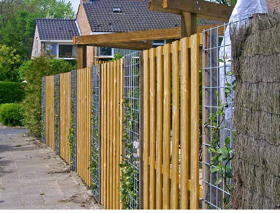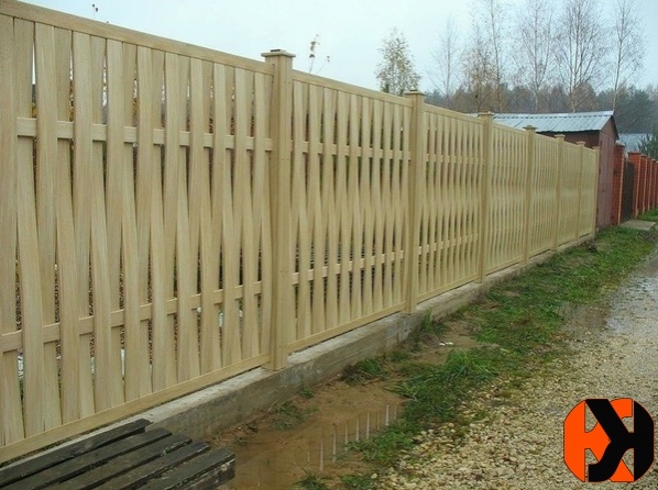 Из него монтируют интересные заборные сооружения: жалюзи, елочку, шахматку.