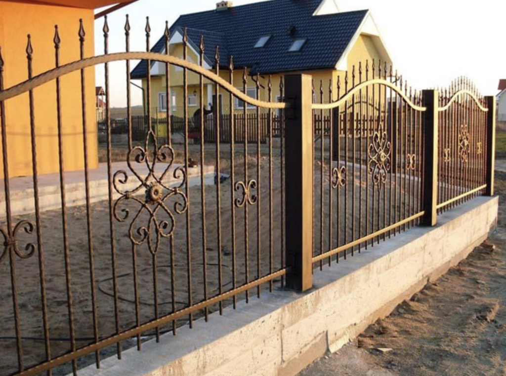 Это самый дорогостоящий вид ограждения. Для его удешевления применяют небольшие вставки из кованых элементов в обычном металлическом заборе на бетонных или стальных опорах.