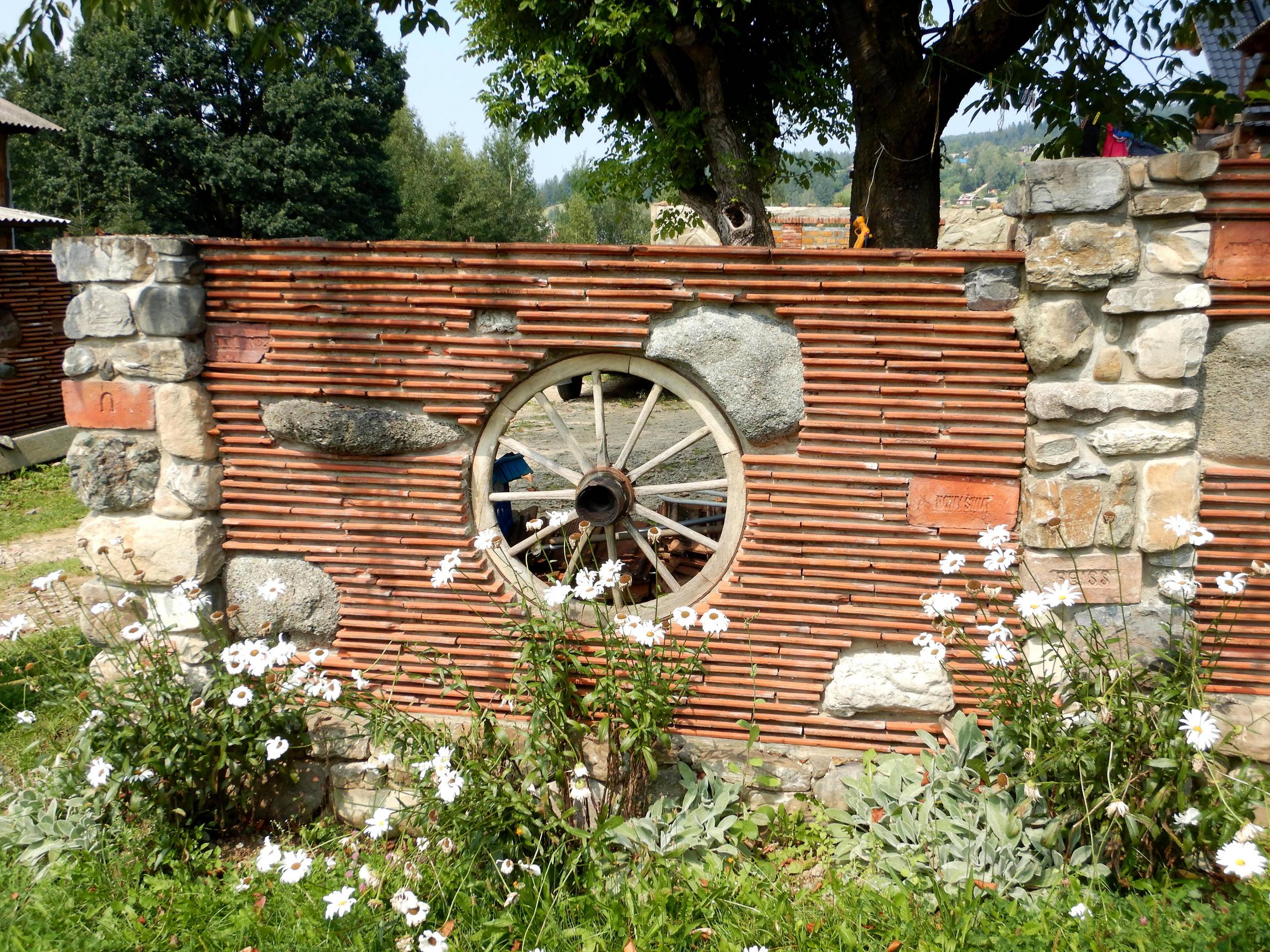 Сооружение из подёрнутых стариной колёс со спицами смотрится круто.
