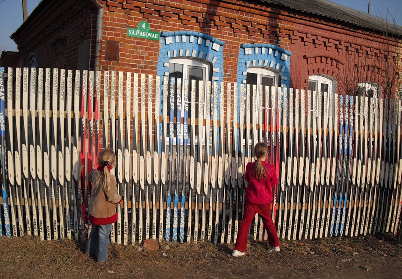 Старые лыжи благодаря своей форме и степени обработки — великолепный материал для стильного забора. Но где взять столько планок?