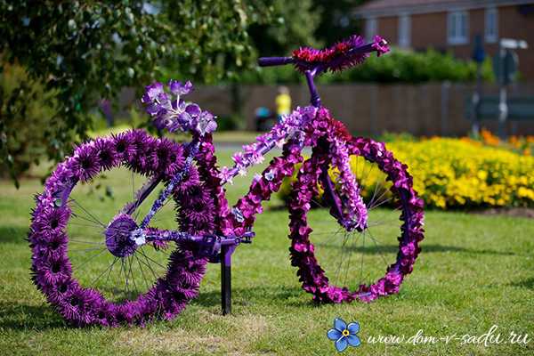 Если вы готовитесь к цветочной выставке, то можно увить садовыми цветами весь корпус велосипеда. Очень эффектно будет выглядеть цветочная композиция, если цветы будут одного цвета.