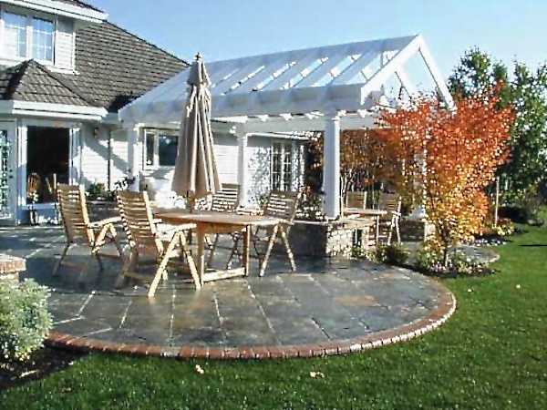 Прекрасно, если Вы сможете сделать навес, и трапезная зона будет находиться именно под ним. Тогда Вам совершенно не будут страшны любые непогоды.