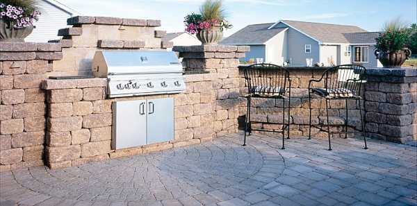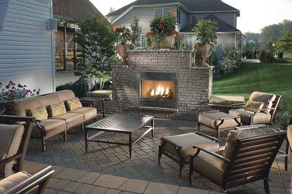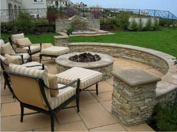 Стилизованный уличный вариант камина придает участку тепла. Он не только практичен, но также выполняет еще и декоративную функцию. С внешней стороны используется такой же камень, как и на участке, внутри камин обработан специальными средствами, позволяющими установке работать и выполнять свое основное предназначение.