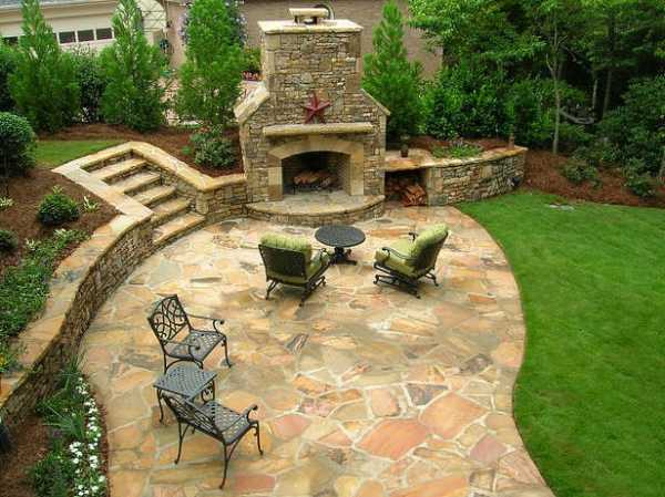 Оригинальное решение – установить камин, а может быть даже большую каменную печь, которые украсят приусадебный участок, а также их можно будет использовать в функциональном плане.