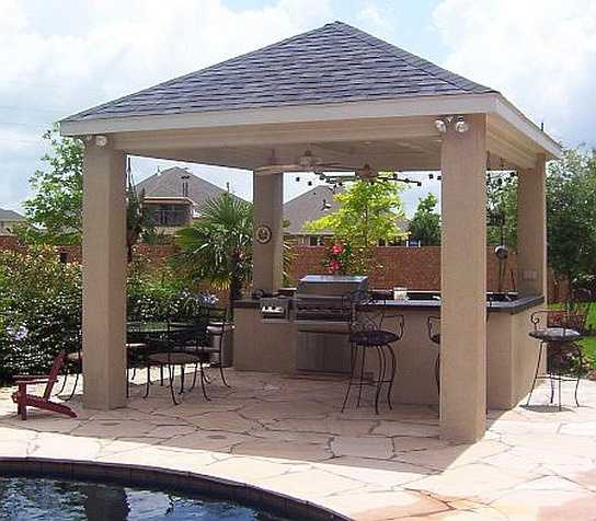 - летняя кухня, которая сейчас чаще выполняется в виде капитальной беседки с мангалом;