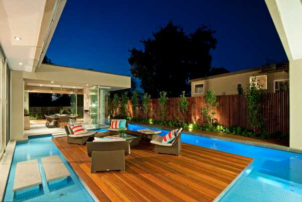 А если облагородить территорию заднего двора частного дома большим проектором, там можно будет также комфортно отдыхать и в ночное время суток.