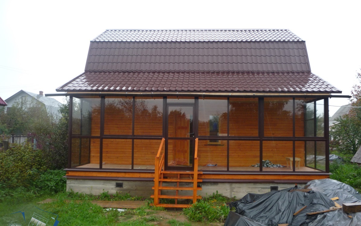 Основной особенностью строения веранды является наличие большого количества окон.