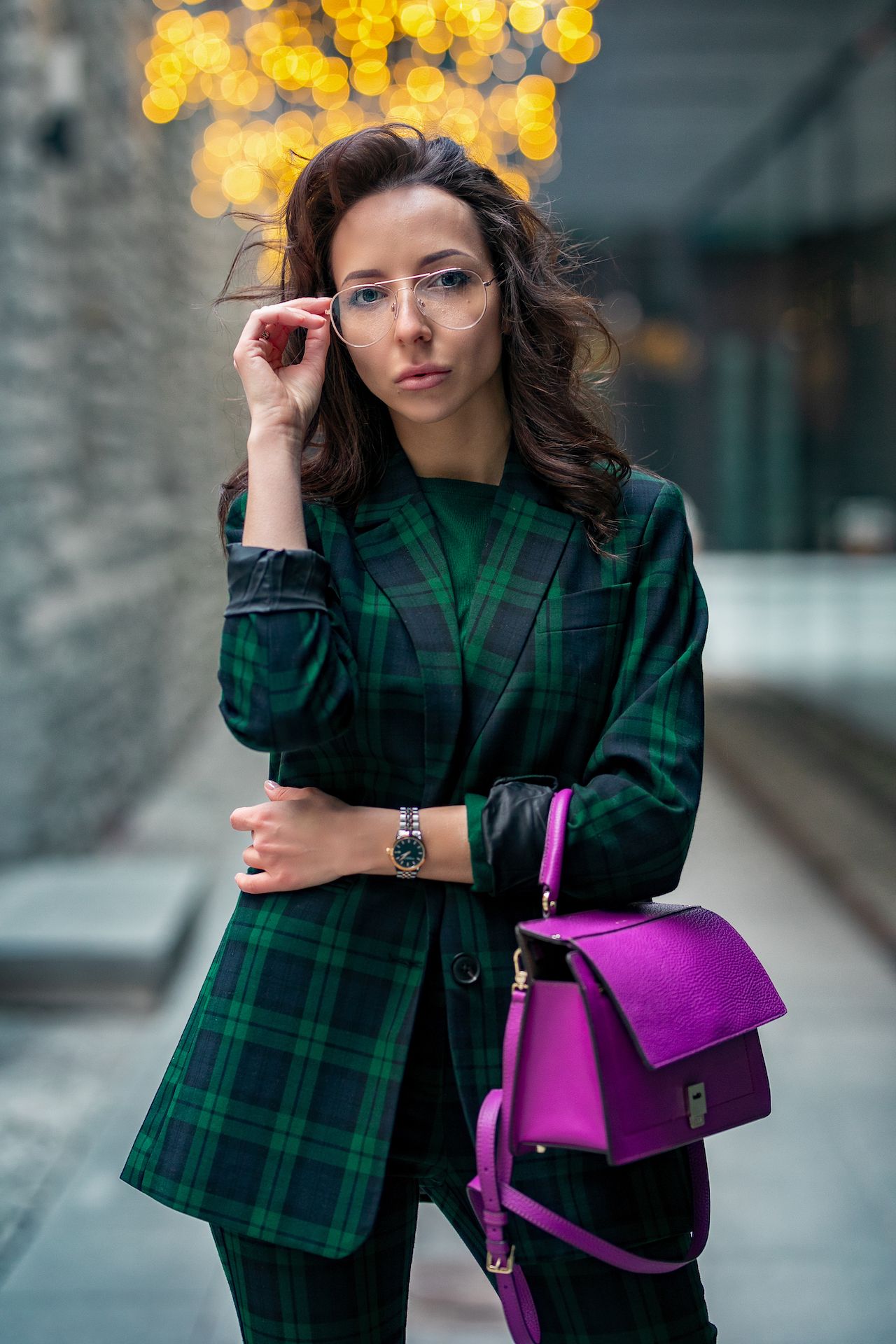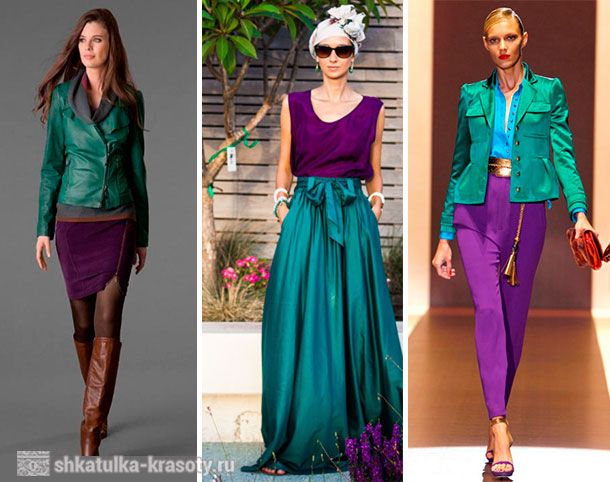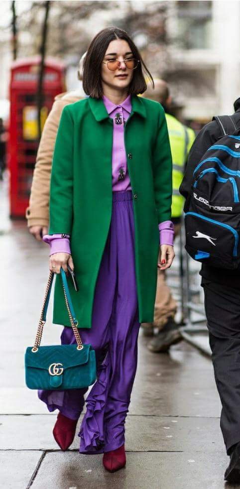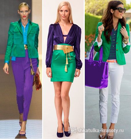Сочетание зеленого и фиолетового в одежде – из той же оперы.