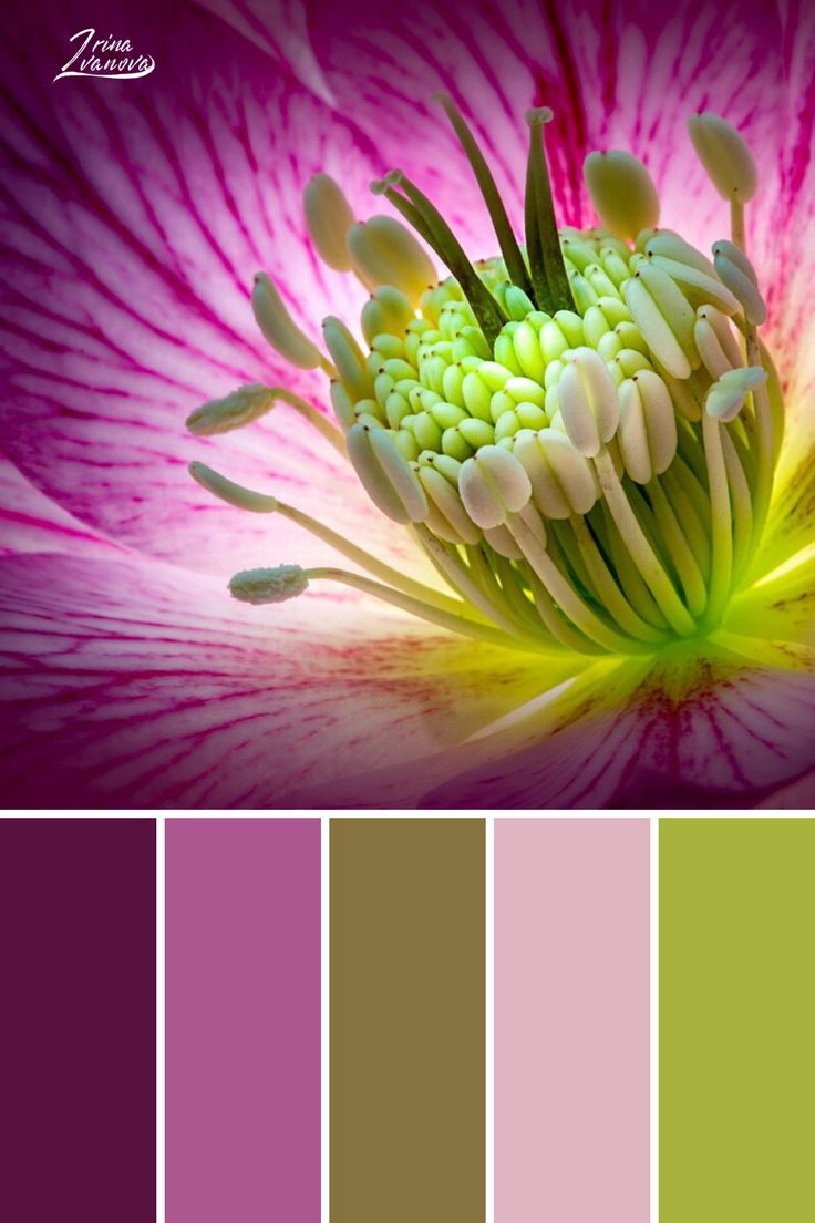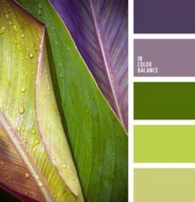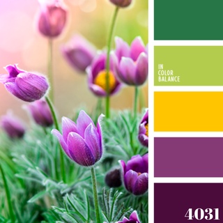 - Фиолетовый и зеленый. Казалось бы сочетание этих цветов ну никак не располагает к спокойному созерцанию, однако, стоит добавить немного розового и появляется ощущение обновления, свежести и весеннего цветения. Одно из самых приятных и легких сочетаний.