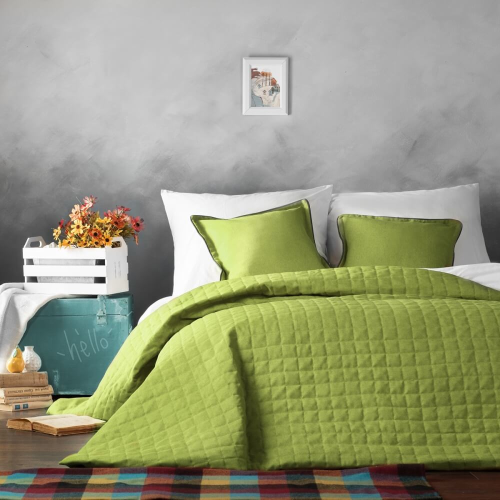 В современном интерьере желтый цвет присутствует практически всегда. Без его использования невозможно создать живой, наполненный радостью и солнечным светом, дом. И, все-таки, у опытных дизайнеров есть цвет фаворит, который они регулярно используются для того, чтобы выгодно подать желтую гамму, – благородный зеленый. Они гармонично сочетаются друг с другом, создают эффект летнего настроения, вдохновляют и наполняют помещение светом. Для большой кровати подойдет желтое с зеленым покрывало, которое за счет своей гаммы успокоит, согреет и взбодрит после сна.