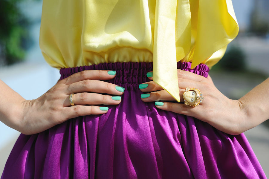 - Ярко-фиолетовый и ярко-лимонно-желтый; добавить оттенки розового или даже бирюзового