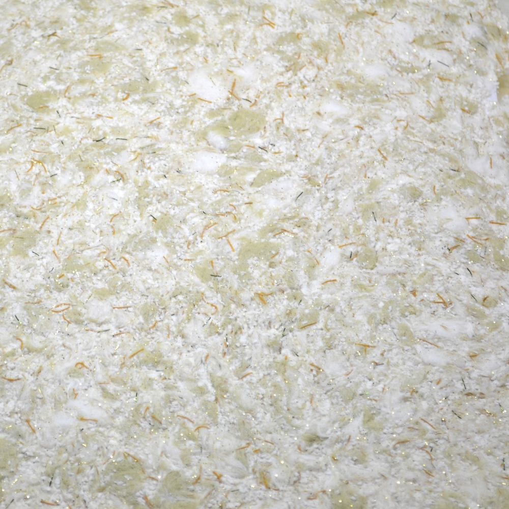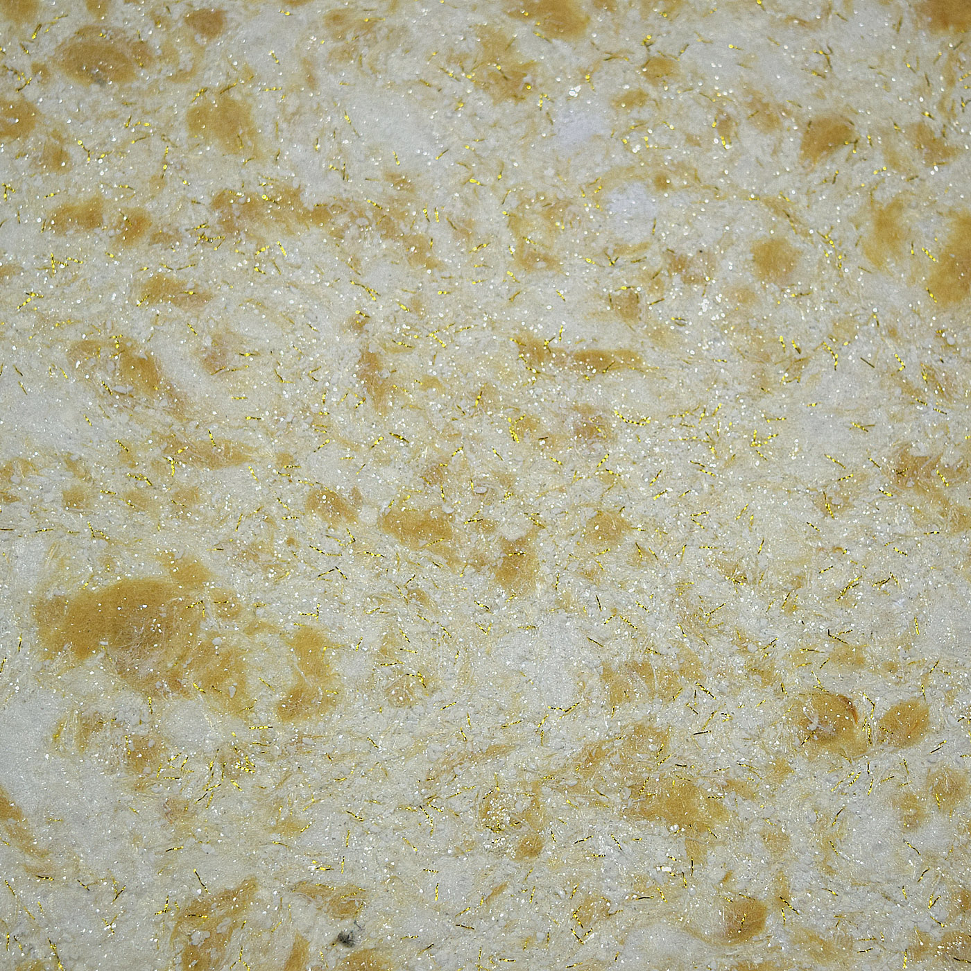 Жидкие обои иначе ещё называют шёлковой штукатуркой из-за схожей консистенции, которую имеет подготовленный к нанесению состав. В него входят целлюлозные, хлопковые или шёлковые волокна, краситель, клеевой состав и декоративный наполнитель (глиттер).