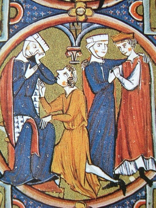 К 14-му Однако в Франция, искусство иллюстрированная рукопись. Особое значение имели французские «Книги часов», молитвенники, состоящие из молитв, псалмов и библейских текстов, многие из которых были богато иллюстрированы. Наиболее известным из них является Très Riches Heures du Duc de Berry, который содержит более сотня страницы иллюстрации, изображающие, среди прочего, современную жизнь.