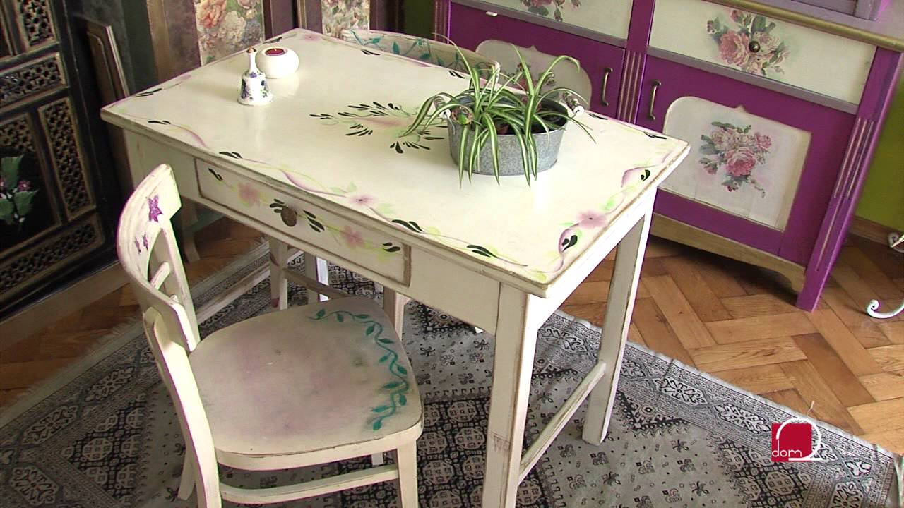 Несложный вариант обработки мебели, для выполнения которого с обрабатываемого участка наждачной бумагой зачищается старое лакокрасочное покрытие. Затем поверхность натирается парафином, а потом из баллончика распыляется краска.