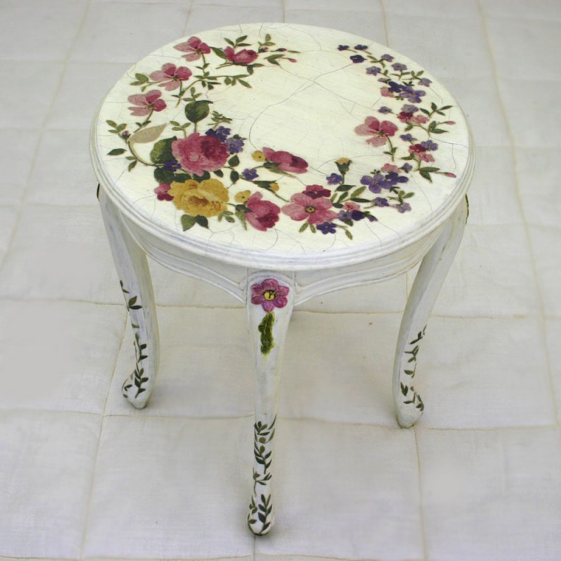 - технику кракелюра, широко используемую в декупаже: она дает эффект старой растрескавшейся поверхности;