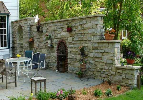 Фото — дикий камень - Материал из натуральных камней считается наиболее дорогим. Он изготавливается посредством прессования натуральных минералов, к примеру, кварца, глины и других, а после их формируют и тщательно обжигают. Если Вы покупаете покрытие от производителя, то можно заказать гладкий и глянцевый камень или более эклектичный состаренный;