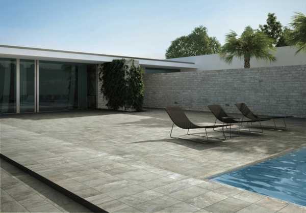 - Керамогранит. Керамогранит по своим характеристикам не уступает натуральному материалу. Внешний вид керамогранита и его расцветки позволяют реализовать различные дизайнерские решения. Изделия выпускаются в виде прямоугольников или квадратов с длиной стороны 30 см, 60 см, 90 см. Благодаря прочности изделия и его устойчивости к влаге, оно может быть использовано как снаружи, так и внутри помещения.